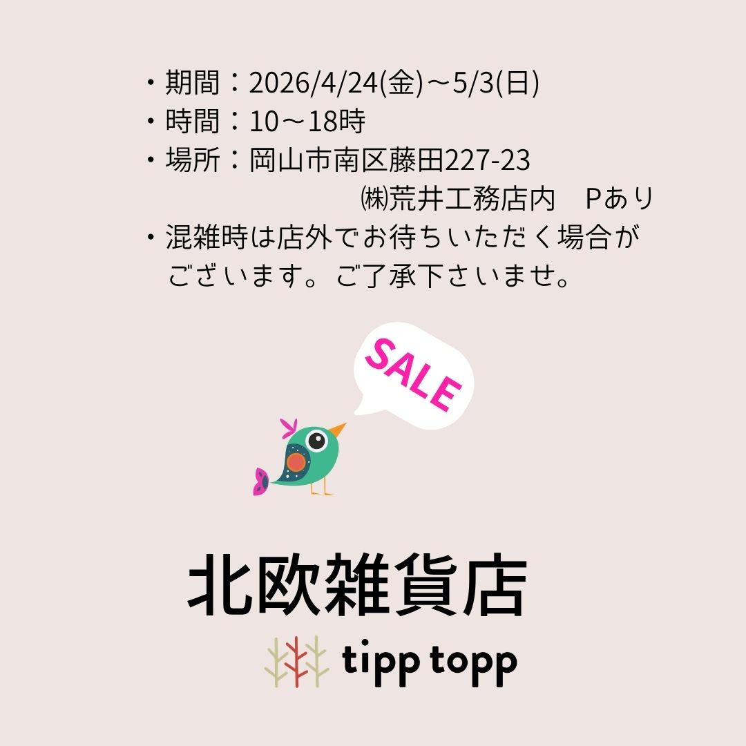 4月24日(金)〜5月3日(日) の10日間。北欧雑貨店 tipp toppが期間限定で「感謝のサンクスセール」 開催♪
